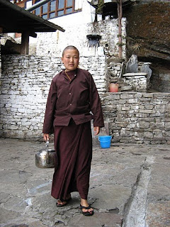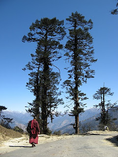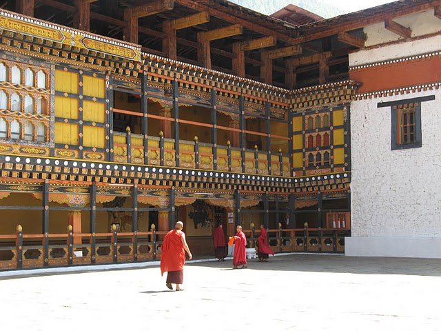 white Stupas, temples and monasteries through the mountains, colorful prayer flags moving to the rhythm of the wind are some of the images associated with Bhutan and, in some way, causing them to go back. Once there the images multiply and take on something of a mystery when the clouds and haze enough. There are other scenes that are consistent: Children with red tunics memorizing Buddhist prayers (bottom photo 1) , monks going from one village to another (photo opposite) , or girls with short hair in preparation for nuns (photo 3) . In the more than 2,000 temples and monasteries around 6,000 monks live.