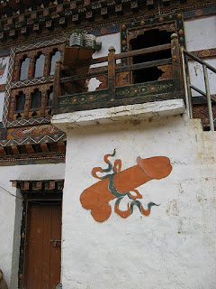 Fertility is represented by the penis, which is also a symbol of good luck. It is painted on the facades of houses for the rich or poor, in stores such as key chains, masks and wood reproductions. "It's the best for luck. It's a good thing for us, ", told me a seller of art objects and antiques. The 'original' because of its size in the valley of Paro (top photo 2) . "To be lucky is to load" , 'said the guide who accompanied me. Photos © Liana Cisneros.