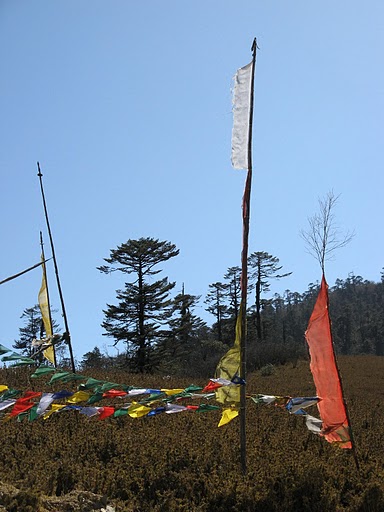 prayer flags of five colors are placed in the most diverse sites. White represents the sun and moon, yellow for air, water red, green, blue fire and earth. "S and believes that prayer flags are Take as the wind to spread the goodwill and compassion in all areas to benefit all. It is strategically placed at high points Egic from onde d can see a river, following a belief qu and the prayers will be transported co tions n wind-drift by the river on their long journey. However, if the flags are hung on astrological dates and address unfavorable s, are believed to bring negative results ", Lily has Wangchuhuk in Facts about Bhutan: The Land of the Thunder Dragon.