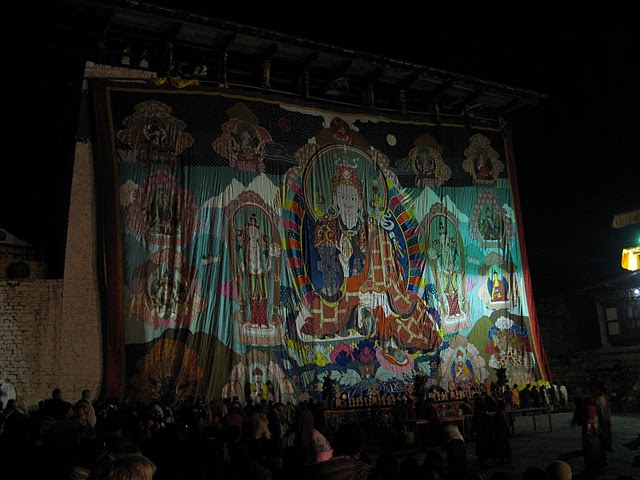 The main day ceremony begins at dawn (2:30 am), with the hanging of thongdroe l (Giant banner with images of deities) for hours, until the people of the long queues to be blessed. People live this moment with much emotion. On the morning of that day, and without the thongdroe l , resume the presentation of expected dances. Photos © Liana Cisneros